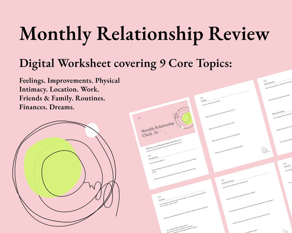 This is a printable relationship check-in worksheet set that can be used for a monthly or weekly reflection with your partner. Just download, print and get started right away!